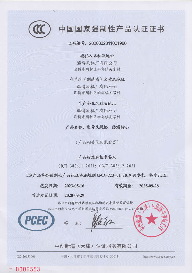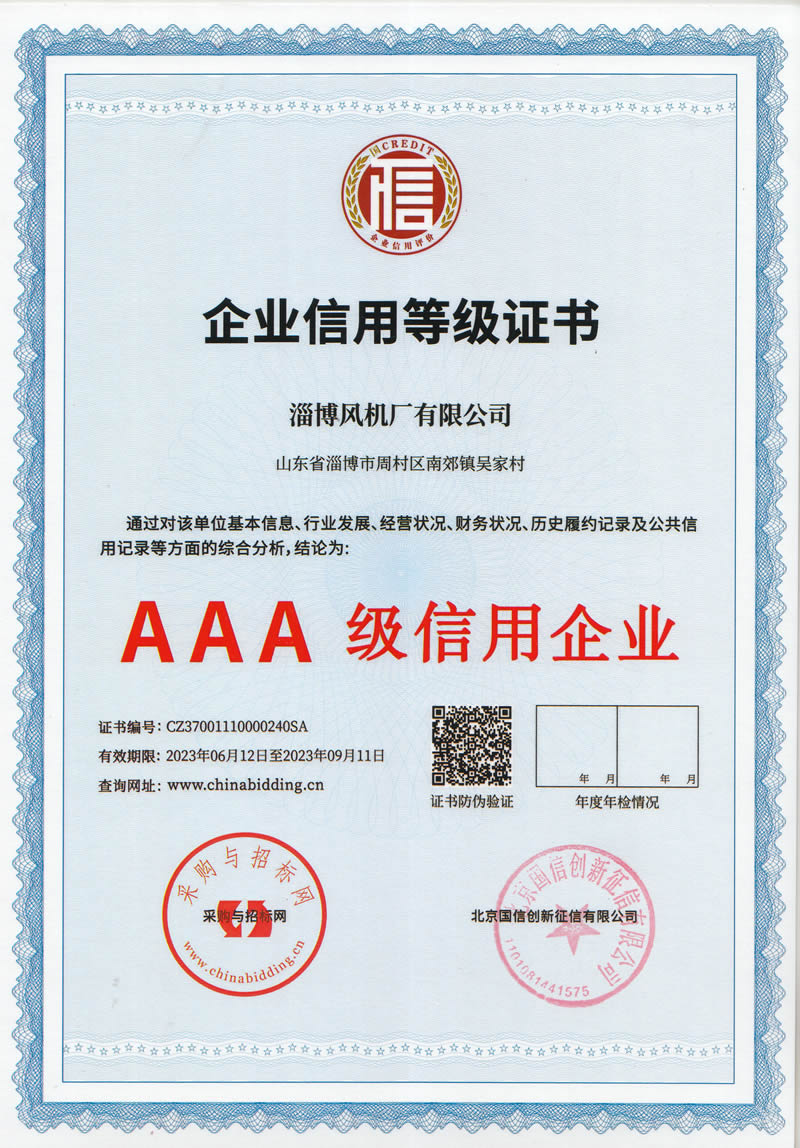熱烈慶祝:一、淄博風(fēng)機(jī)廠有限公司全系產(chǎn)品通過能效綠色節(jié)能環(huán)保二級認(rèn)證. 二、 淄博風(fēng)機(jī)廠有限公司通過安全標(biāo)準(zhǔn)化驗(yàn)收合格. 三、注冊資金增資至7800萬.